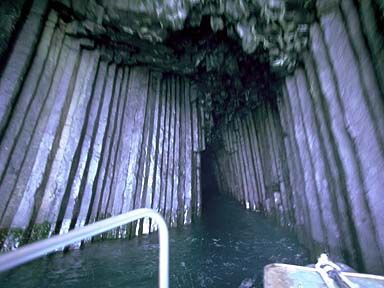 芥屋の大門は日本3大玄武洞の一つで深成岩を破って噴出した玄武岩柱の集合が紺碧の深海上にそそり立つ断崖となって高さ64m長さ180m突出し、その列挙は海蝕のため奥行90m・幅2~10mの神秘的な暗黒の洞窟を形成しています。